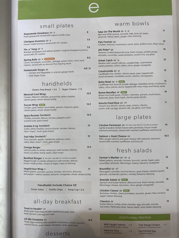 Mixed greens, avocado, tomato, broccoli, carrots, beets, peas, cucumber, almonds, Manchego cheese, balsamic vinaigrette on the side. Gluten-free & vegetarian.